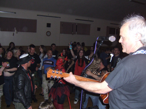 The entertainment moved on towards Village Hall in the evening, this was to host a varied selection of entertainers, Leather and Beer, Buck Rogers and Ted Christopher as well as a varied selection of music, from Rock to Punk to Scottish. The music seemed a bit loud at times, but that was either me getting older or just forgetting what I had experienced in earlier life!!! In all it was a great night. Presentations of swords were given by the Saints and Sinners in their own style, by a Red Devil, a Minister and 6 women devils all body painted in red from head to toe, making everyone else the same colour who they came in contact with. The Swords were presented to those who had bike related achievements attached to the event. To name a few, the best design of paint job on their bike and best engineered bike, to two victims of tales of woe for the event, one who‘s bike had broken down on the M74, but not to be deterred, arrived sitting on his bike on the back of a car transporter. The other, a couple who got themselves lost, circling a location numerous times some 60 miles away.